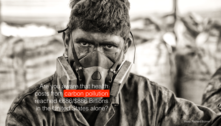 Escalating hidden health costs from burning fossil fuels globally are enormous. In the Unites States alone are expended as much as €686/$886 Billion each year, most of it added directly to our family’s doctor, hospital bill or health insurance plan*.